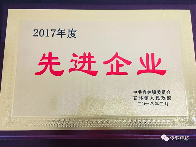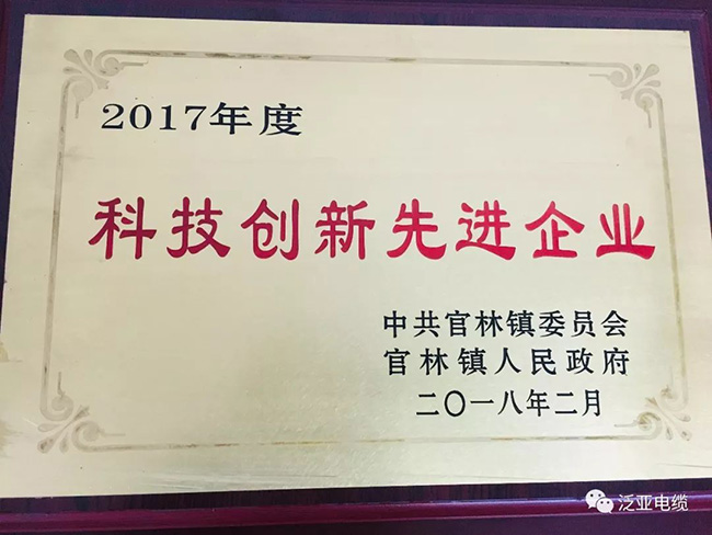 泛亚电缆荣获官林镇2017年度科技创新进步奖